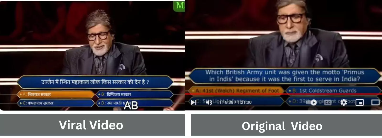 बूम ने अपनी जांच में पाया कि असल वीडियो में अमिताभ बच्चन उज्जैन के महाकाल लोक को लेकर नहीं बल्कि पहली ब्रिटिश आर्मी यूनिट को लेकर सवाल करते हैं.
