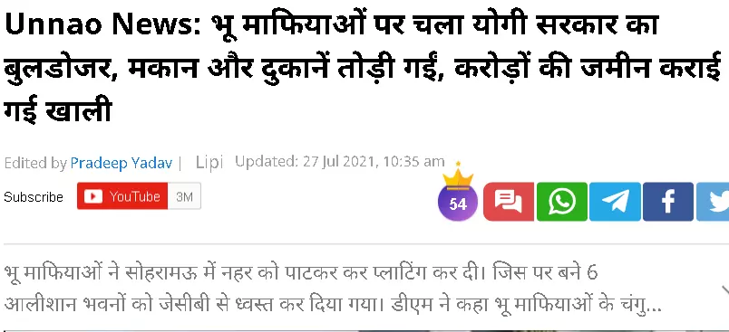 वायरल वीडियो की सत्यता जानने के लिये हमने सबसे पहले कुछ कीवर्ड्स की मदद से गूगल सर्च किया. हमें पता चला कि ये तोड़फोड़ की मामला दरअसल उत्तर प्रदेश के उन्नाव ज़िले के सोहरामऊ का है. और इस कार्रवाई में कोई भी मस्जिद नहीं तोड़ी गई है. उत्तर प्रदेश सिंचाई विभाग के अधिकारी लोकल प्रशासन की मदद से सरकारी ज़मीन के अवैध क़ब्ज़े को ख़ाली करा रहे थे.