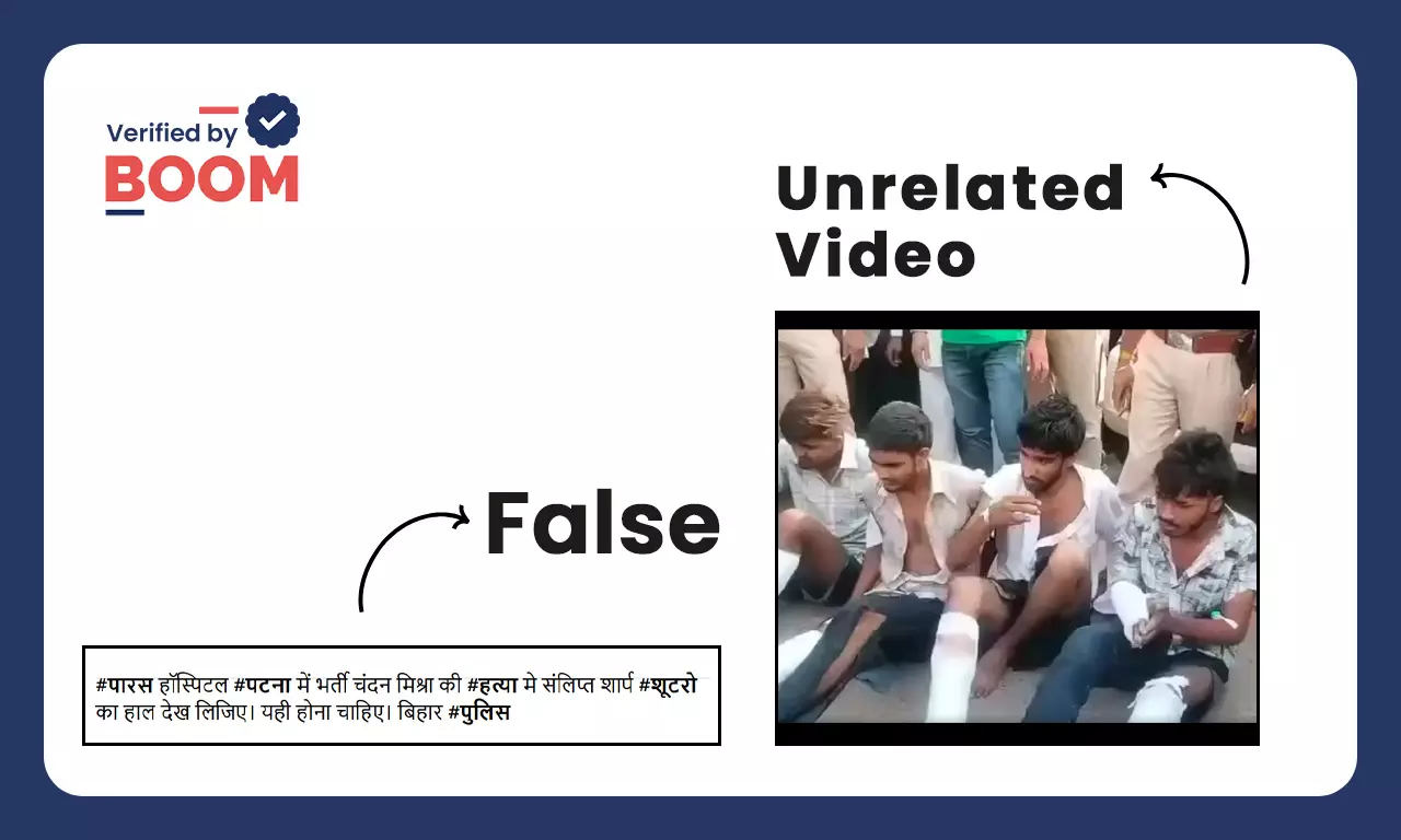 पटना के चंदन मिश्रा हत्याकांड में आरोपियों पर पुलिस की कार्रवाई के दावे से असंबंधित वीडियो शेयर किया जा रहा है.