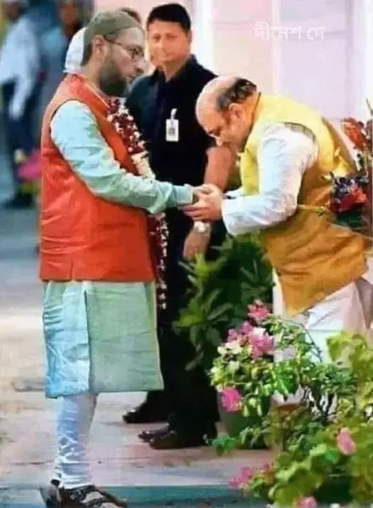असदुद्दीन ओवैसी को बधाई देते अमित शाह की यह तस्वीर एडिटेड है