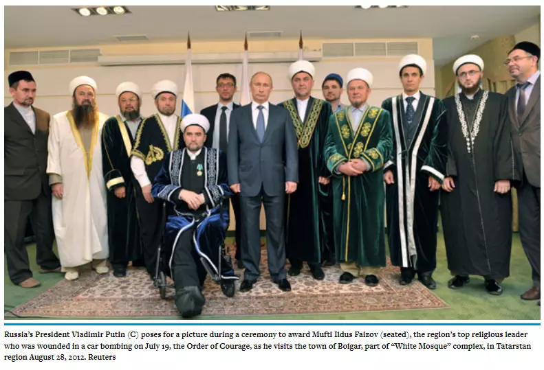 AEI की रिपोर्ट के अनुसार तस्वीर 2012 की है जब रूसी राष्ट्रपति पुतिन तातारस्तान (रूस) के शीर्ष धार्मिक नेता मुफ्ती इल्डस फैज़ोव सम्मानित करने के लिए गए हुए थे.