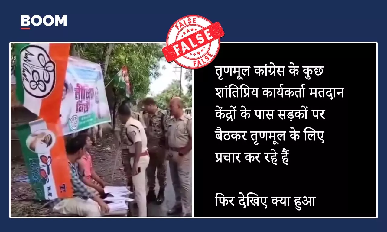 यह वीडियो एक्स पर इस कैप्शन के साथ साझा किया जा रहा है कि "तृणमूल कांग्रेस के कुछ शांतिप्रिय कार्यकर्ता मतदान केंद्रों के पास सड़कों पर बैठकर तृणमूल के लिए प्रचार कर रहे हैं. फिर देखिए क्या हुआ."