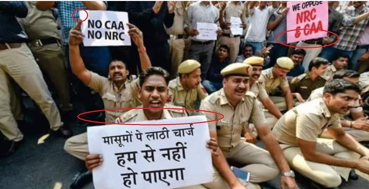 पुलिस सीएए और एनआरसी के ख़िलाफ प्रदर्शन में शामिल? नहीं यह फ़र्ज़ी है