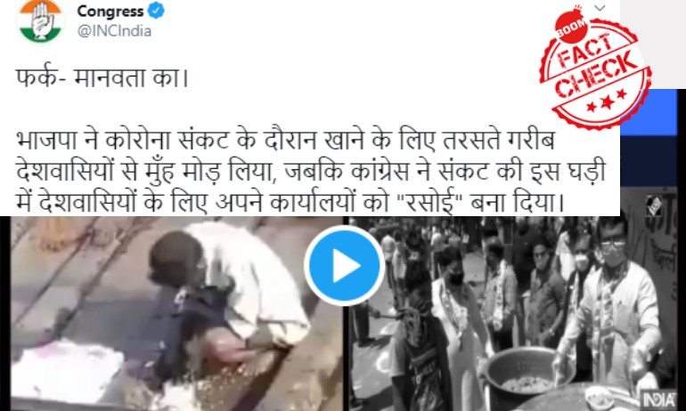 इन दोनों वीडियोज़ को इस कैप्शन के साथ ट्वीट किया गया है 'फर्क- मानवता का। भाजपा ने कोरोना संकट के दौरान खाने के लिए तरसते गरीब देशवासियों से मुँह मोड़ लिया, जबकि कांग्रेस ने संकट की इस घड़ी में देशवासियों के लिए अपने कार्यालयों को "रसोई" बना दिया।'
