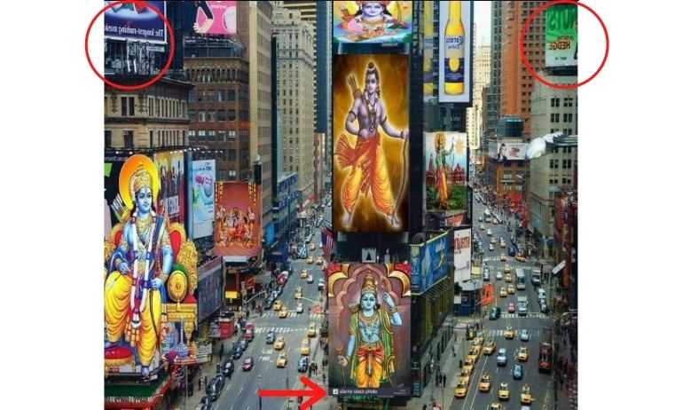 टाइम्स स्क्वायर पर भगवान राम की तस्वीरें दिखाती यह वायरल फ़ोटो फ़र्ज़ी है