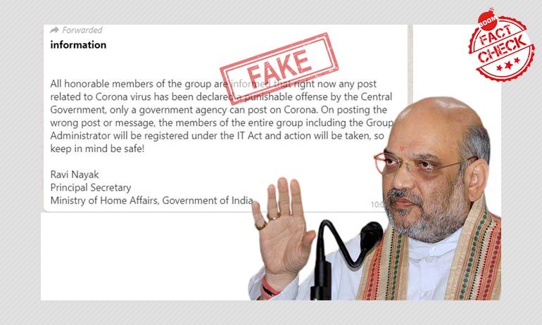 क्या वाकई गृह मंत्रालय ने कोरोनावायरस मैसेज शेयर करने को दंडनीय अपराध बनाया है?