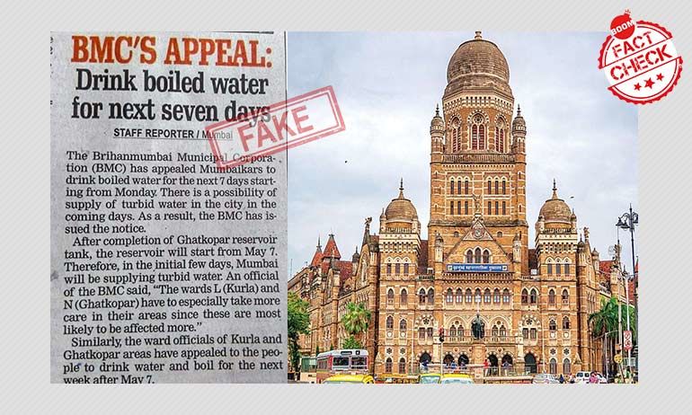 बूम ने विजय खाम्ब्ले पाटिल, मुख्य जनसंपर्क अधिकारी, बृहामुंबई महानगर पालिका से संपर्क किया जिन्होंने यह कहा की : " हमने पहले लोगों को गरम पानी का सेवन करने की सलाह दी है लेकिन हाल में हमने ऐसा कोई नोटिस नहीं छापा |"
