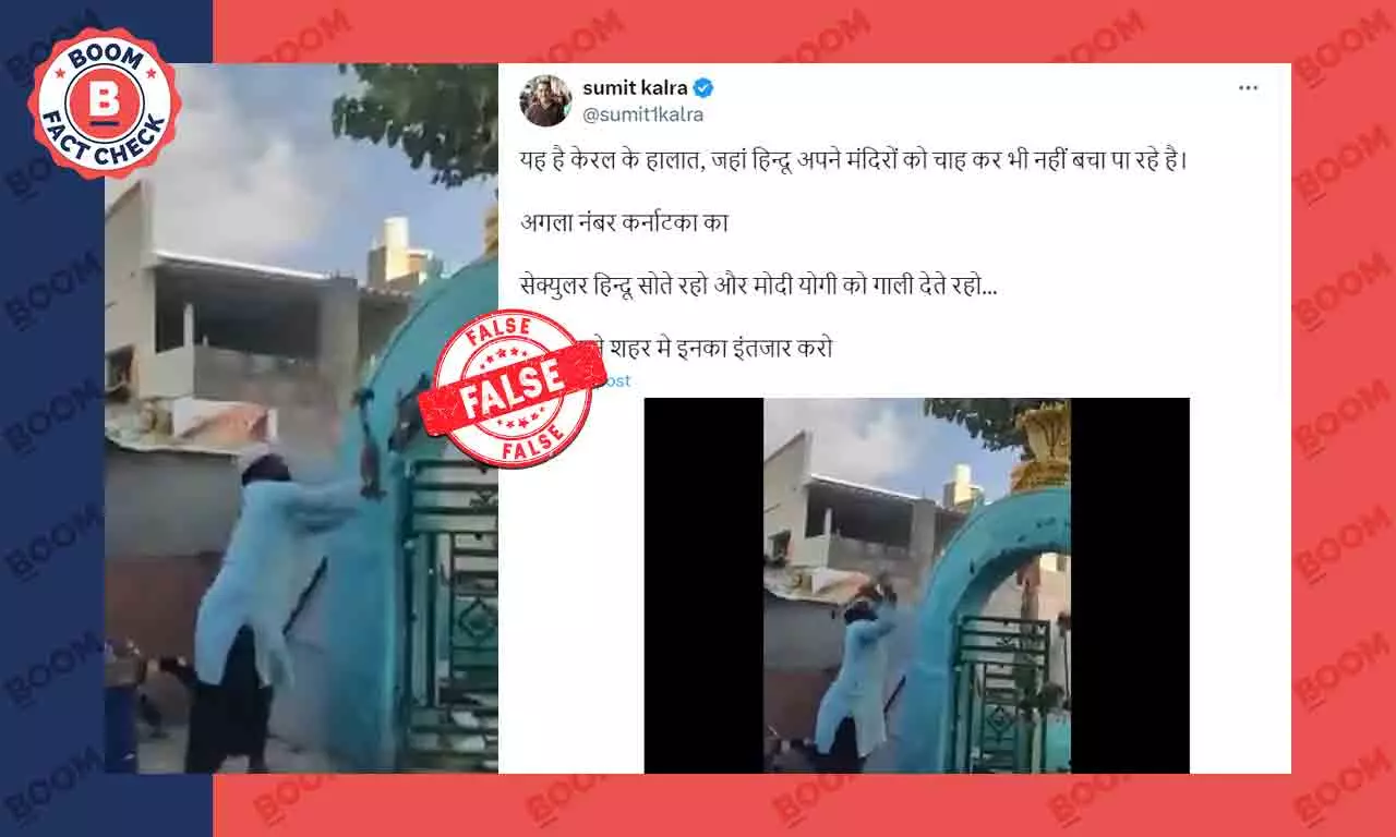 सोशल मीडिया पर एक भवन के गेट को तोड़े जाने का एक वीडियो वायरल (आर्काइव पोस्ट) है. यूजर्स वीडियो को लेकर सांप्रदायिक दावा कर रहे हैं कि केरल में हिंदुओं के मंदिर तोड़े जा रहे हैं और लोग कुछ भी नहीं कर पा रहे हैं.