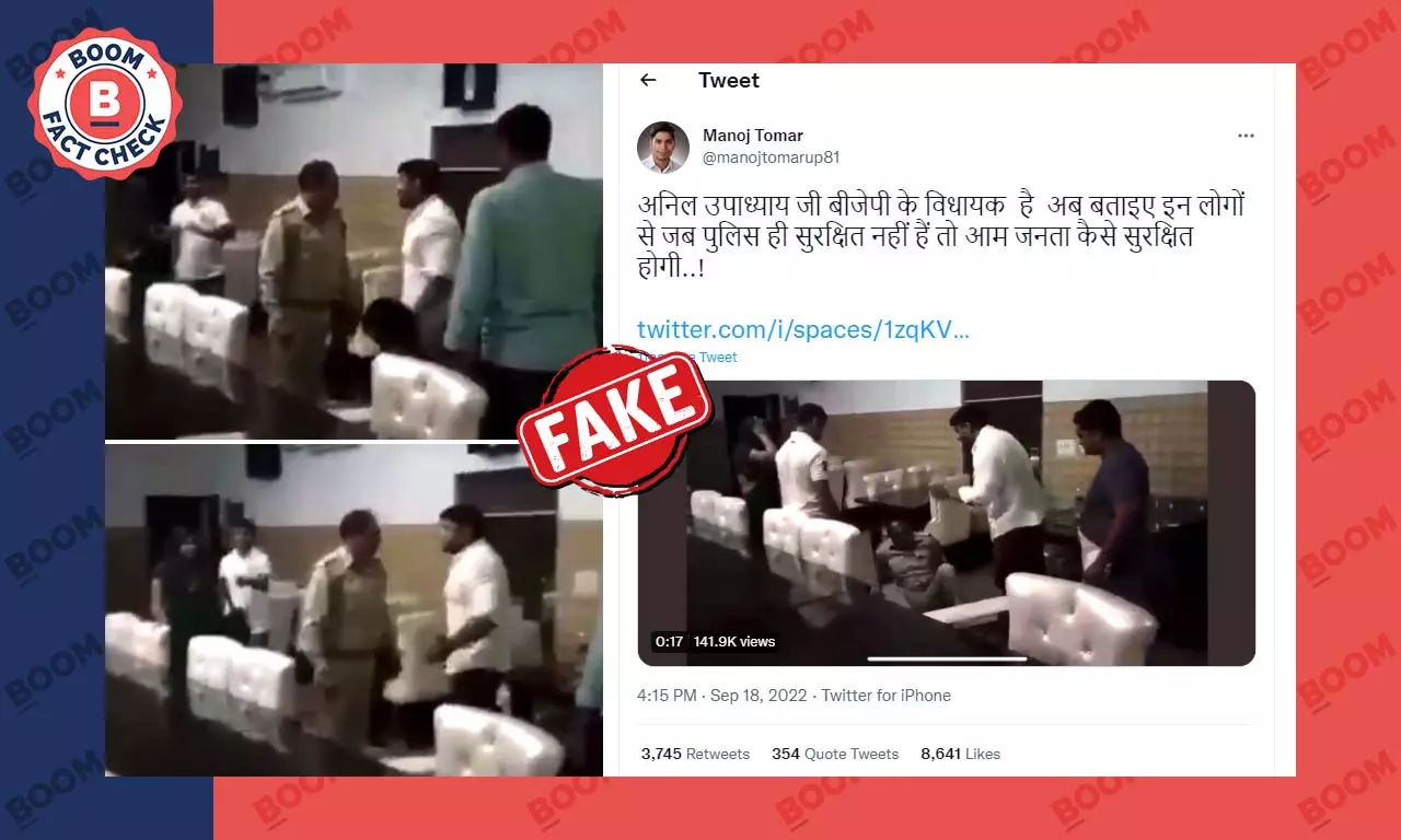 नहीं, पुलिसकर्मी की पिटाई करता शख़्स बीजेपी विधायक अनिल उपाध्याय नहीं है