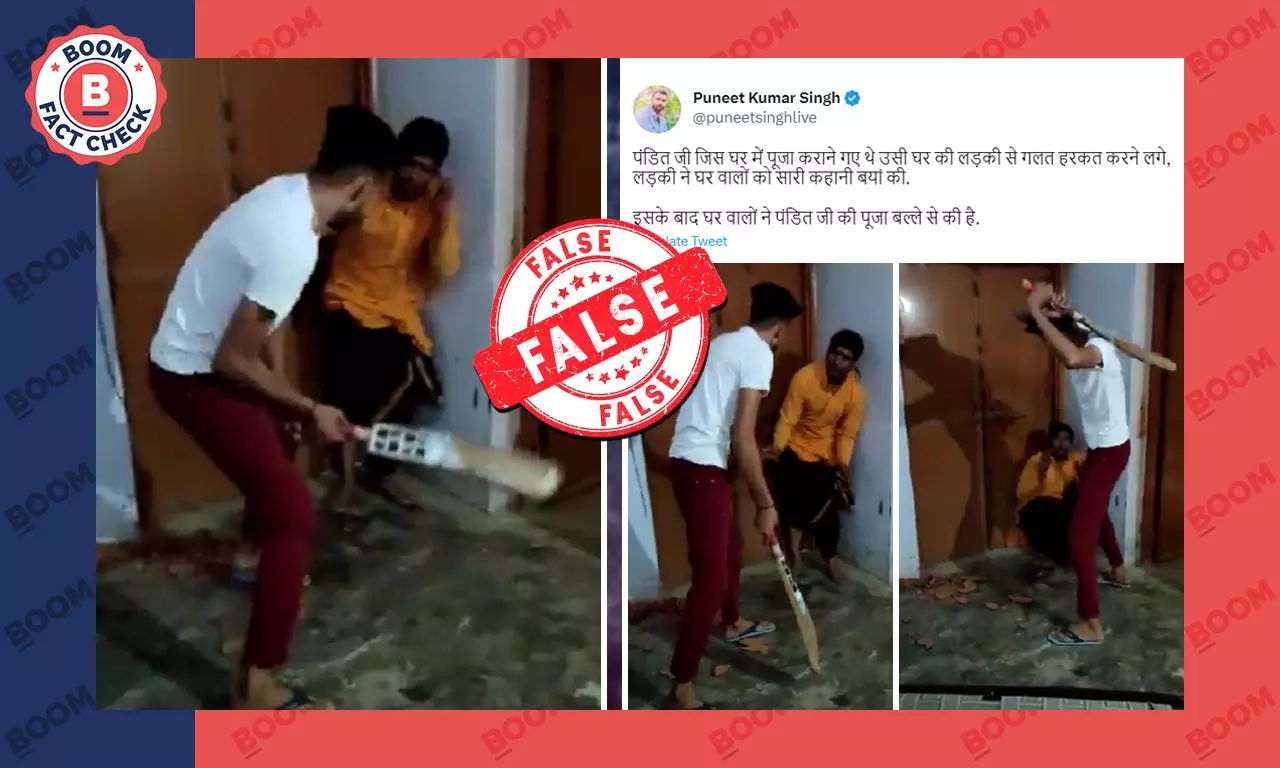 पुजारी के साथ मारपीट का पुराना वीडियो छेड़खानी के फ़र्ज़ी दावे से वायरल