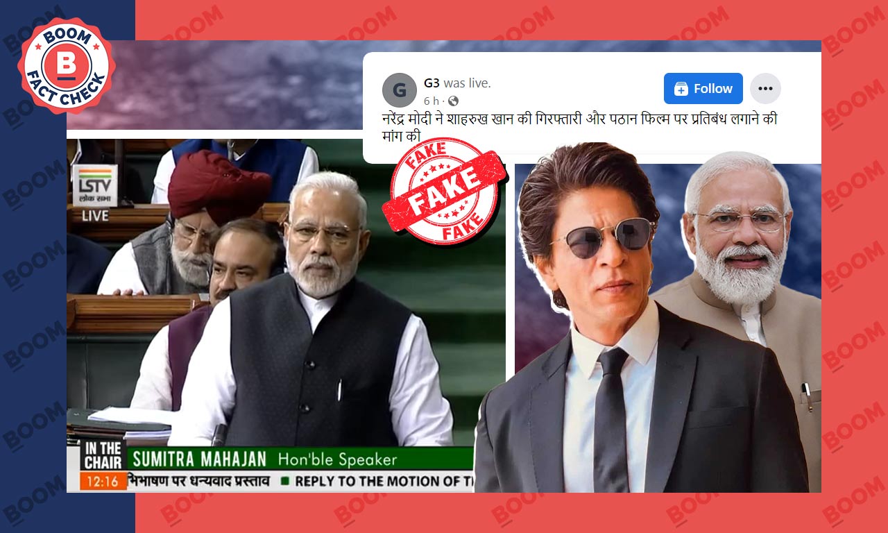 Claim : नरेंद्र मोदी ने शाहरुख खान की गिरफ्तारी और पठान फिल्म पर प्रतिबंध लगाने की मांग की