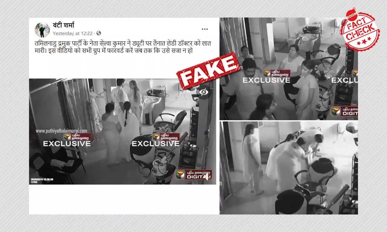 Claim : तमिलनाडु द्रमुक पार्टी के नेता सेल्वा कुमार ने ड्यूटी पर तैनात लेडी डॉक्टर को लात मारी