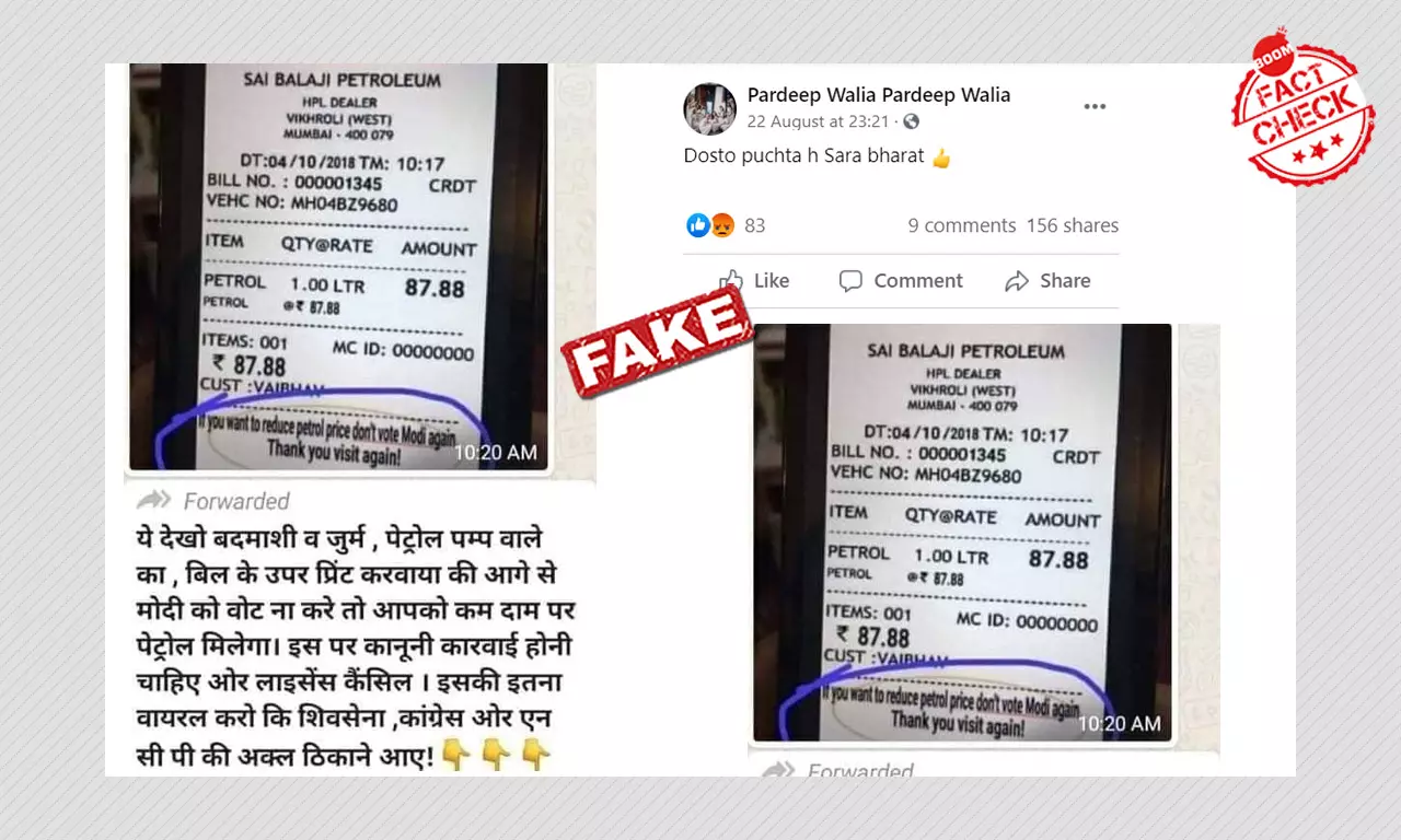 'Don't vote for Modi' के नाम से वायरल ये पेट्रोल पंप बिल फ़र्ज़ी है