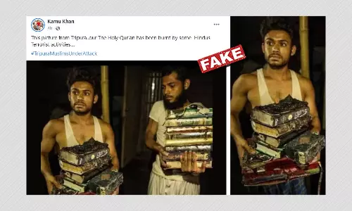 दिल्ली में जली हुई क़ुरान की पुरानी तस्वीरें त्रिपुरा बताकर वायरल